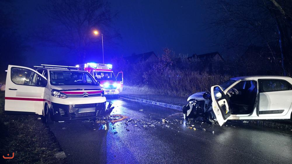 Aus bisher ungeklärten Gründen kam es zu einem Frontalzusammenstoß zwischen einem Personenkraftwagen und einem Transporter. Infolge des Unfalls wurden drei Personen verletzt aber nicht eingeklemmt.