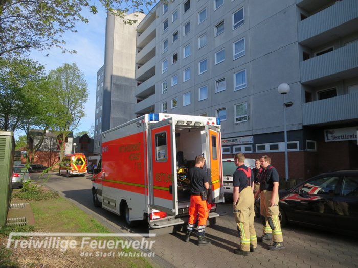 Mithilfe eines Rettungstuches wurde die Patientin zurück in ihre Wohnung im 6. Obergeschoss getragen.